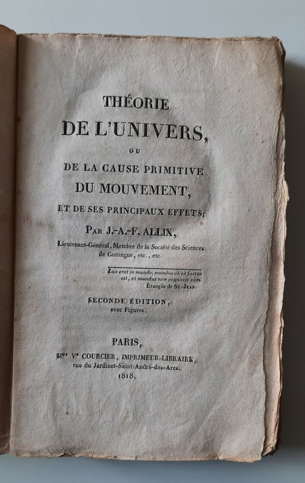THEORIE DE L'UNIVERS PAR J.J. F. ALLIX PARIS COURCIER 1818