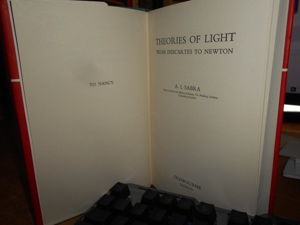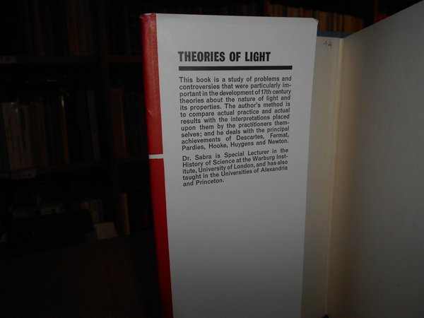 A. I. SABRA. London, Olbourne, 1967. Theories of light from Descartes to Newton. In-8°, tela con titoli in oro, sovracopertina. 363 pp. Prima edizione. Come nuovo. Uff. C - I - 7