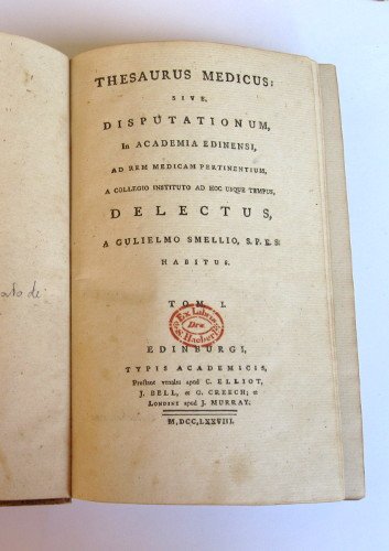 THESAURUS MEDICUS SIVE DISPUTATIONUM, IN ACADEMIA EDINENSI AD REM MEDICAM PERTINENTIUM, A COLLEGIO INSTITUTO AD HOC USQUE TEMPUS, DELECTUS A GULIELMO SMELLIO, S.P.E.S. HABITUS.