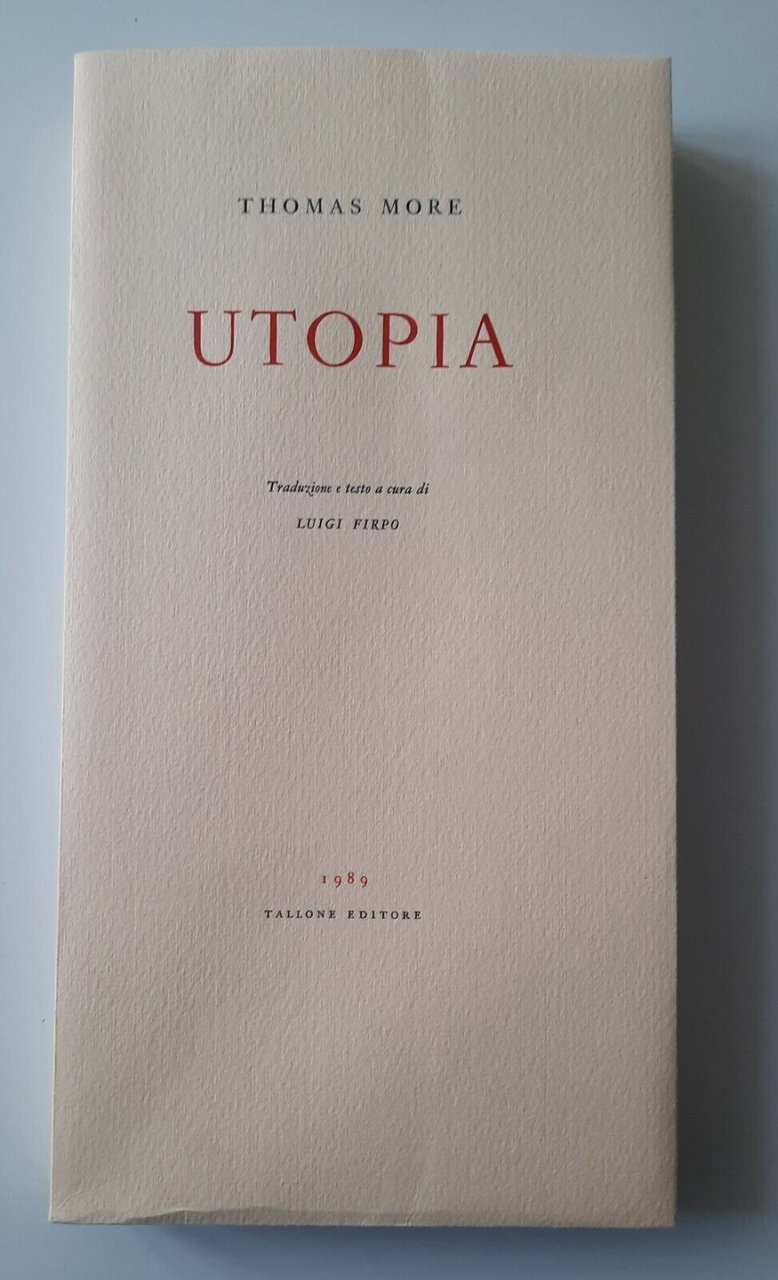 THOMAS MOORE UTOPIA TALLONE EDITORE 1989Cm. 28 x 15, pag. 224, legatura editoriale, copertina illustrata, astuccio e custodia.In ottime condizioni, lievissimi segni del tempo.
