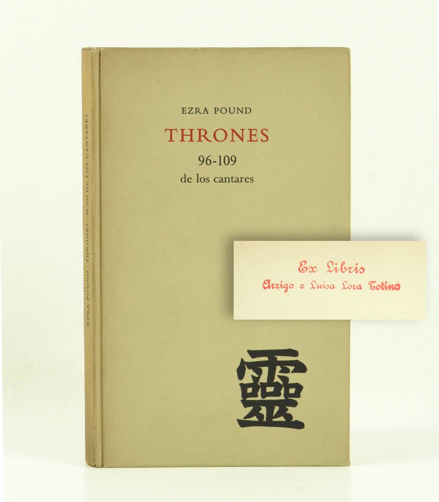 LIBROPrima edizione, prima tiratura.Esemplare nr. 158/300: la copia di Arrigo Lora Torino (ex libris a timbro), noto esponente della poesia visiva; in ottime condizioni, la lacuna alla riga 9 di p. 85 («no war in Europe [until ’70]») è integrata tramite apposito bigliettino di errata corrige a stampa.300 esemplari numerati, stampata in conformità con le istruzioni tipografiche date dall'autore. Precede le edizioni in lingua inglese (London, Faber & Faber, [1960]; New York, New Directions, [1959]), che riproducono in offset e dietro concessione questa edizione. Gallup, Ezra Pound: a Bibliography, A77a