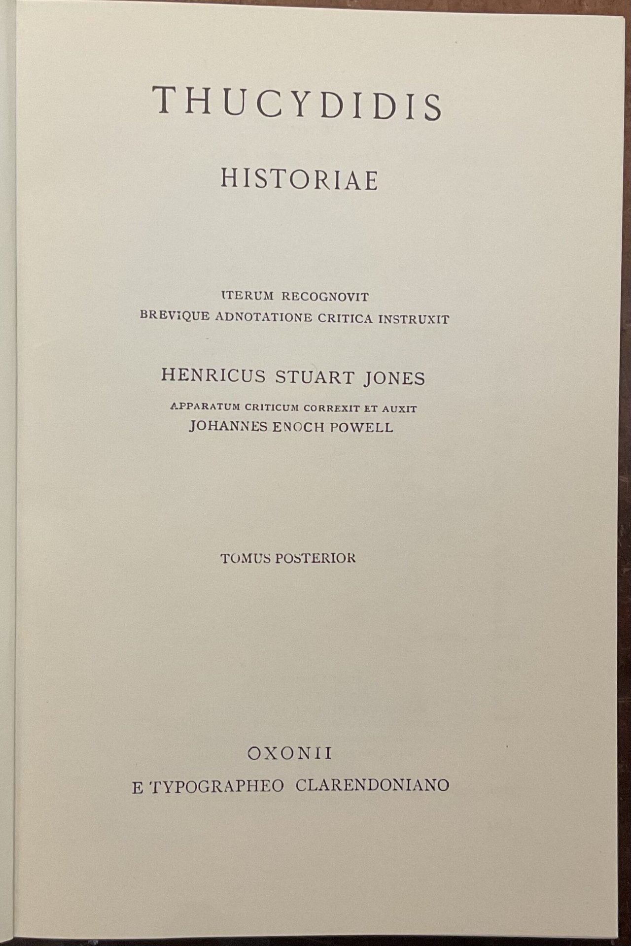 Thucydidis. Historiae. Tomus posterior. Iterum recognovit brevique adnotatione critica instruxit Henricus Stuart Jones (Copia)