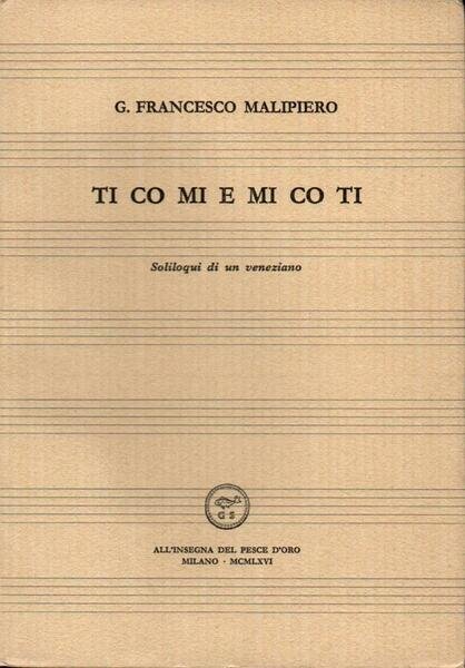 "Ti co mi e mi co ti. Soliloqui in veneziano", edizione marzo 1966, pp. 105, formato 12 x 17.