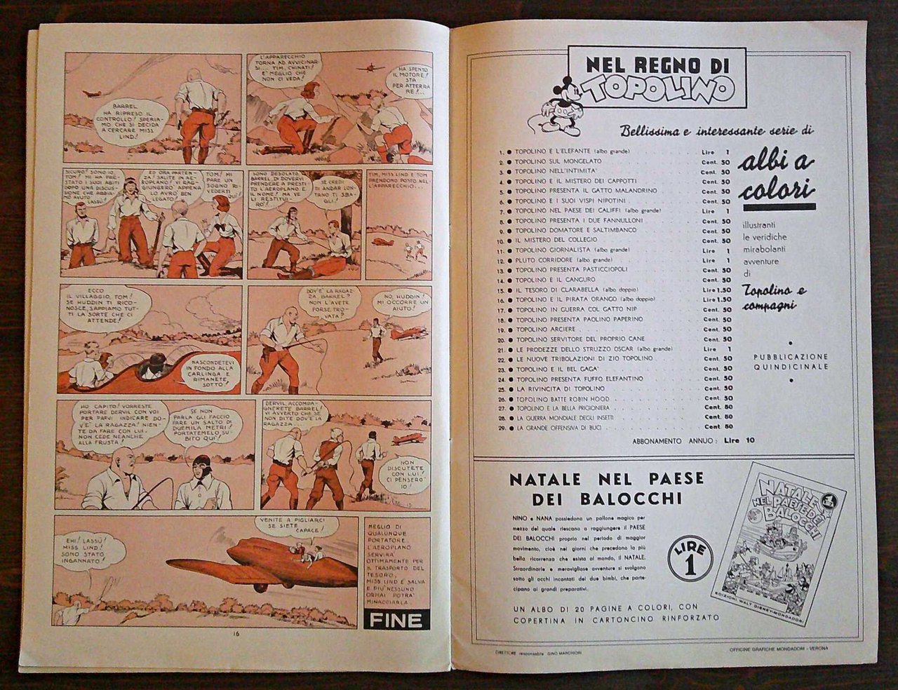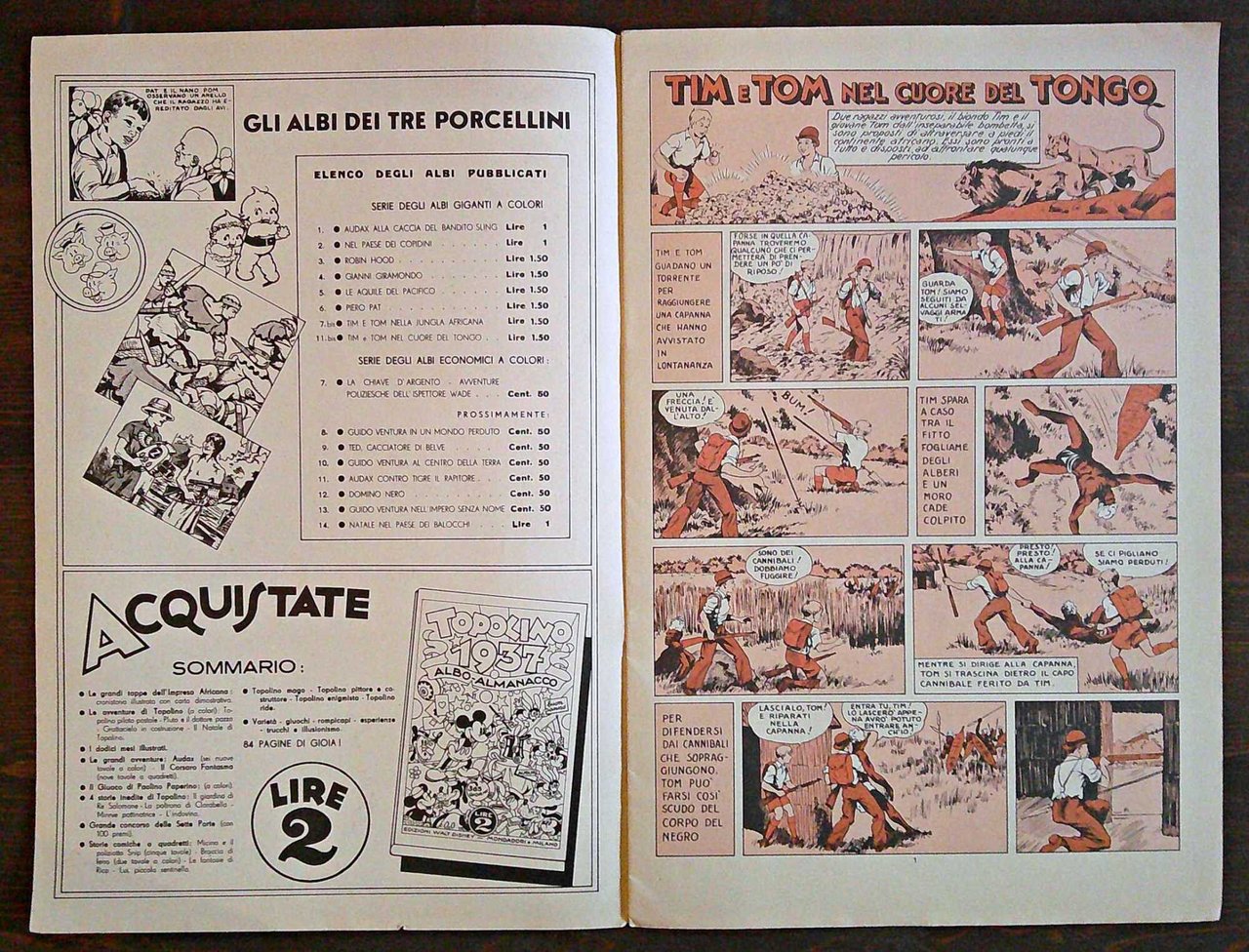 Gli albi dei tre porcellini. Anno Primo - Anno N.11 Bis. 20 Novembre 1936 - Ed. Mondadori. Tim e Tom Nel cuore del Tongo. Ristampa ANASTATICA. Ed. Camillo Conti - Roma, Ottobre 1980. Supplememto Albi dell'Avventura. Brossura editoriale. 26x40; pp.16. Ottimo stato. , Ottimo (Fine)