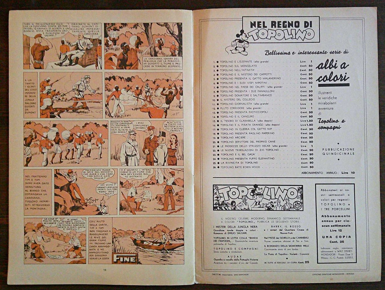 Gli albi dei tre porcellini. Anno Primo - Albo N.7 Bis, 20 Settembre 1936 - Ed. Mondadori. Tim e Tom. Nella Jungla africana. Ristampa ANASTATICA. Ed. Camillo Conti - Roma, Ottobre 1980. Supplemento Albi dell'Avventura. Brossura editoriale. 26x40; pp.16. Ottimo stato. , Ottimo (Fine)