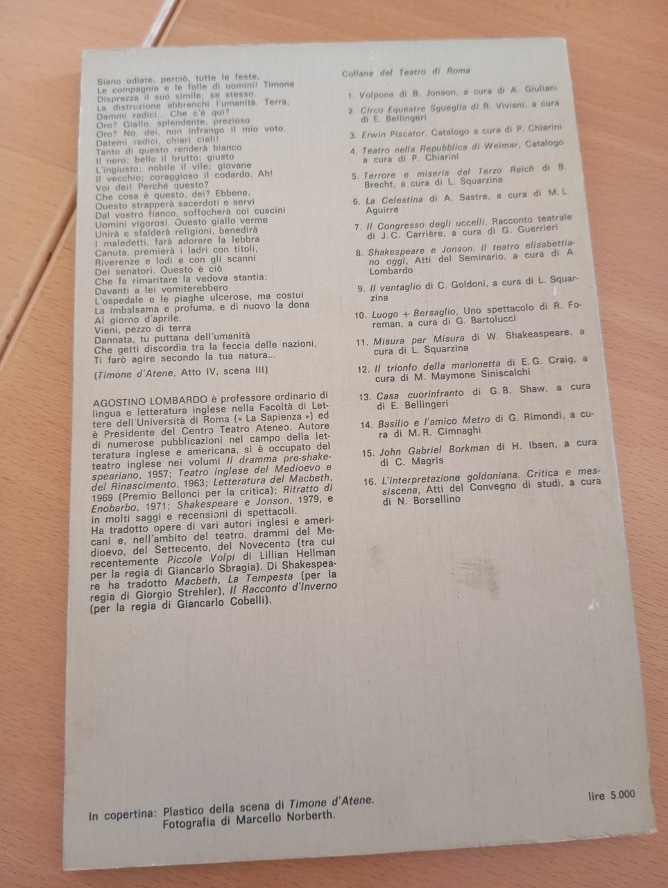 Timone d'Atene, W. Shakespeare, Teatro di Roma, Agostino Lombardo, 1983