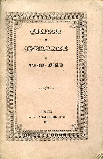 In-16°, pp. 56, brossura editoriale rosa con titolo entro bordura ornamentale. Vignette con panoplie d'armi al titolo e al piatto posteriore. Ottimo esemplare intonso entro velina protettiva. Edizione originale. '[Questo opuscolo] nel quale l'autore metteva insieme, fieramente biasimandoli, ultrademocratici di Firenze e di Roma, l'obbligò a lasciare la Toscana' (Rosi). Parenti, Rarità, III, p. 223-224: 'Edizione originale, molto rara'. Biancardi-Francese, p.36. Ghisalberti, I, 148. Rosi, IV, 393.