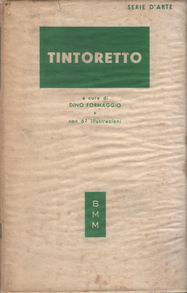 In-16°, pp. 121, (5), legatura editoriale con sovraccoperta. Alla carta che ricopre il piatto anteriore, piccolo foro, di mm 3 di diametro. Segni d'uso e del tempo alla sovraccoperta, con tracce d'umido e piccole mende, restaurate, ai bordi e una piccola mancanza nel bordo superiore della parte posteriore. Dorso della sovraccoperta un po' brunito. Con dieci tavole fuori testo,di illustrazioni in bianco e nero, con numerazione romana e cinquantadue tavole fuori testo, sempre ospitanti illustrazioni in bianco e nero, con numerazione araba. Piccoli aloni di colla all'altezza delle cuciture dei fascicoli. Nel margine interno della tavola V, due piccole abrasioni. Normale patina del tempo alle pagine, con arrossature, più pronunciate ai margini, dovute al tipo di carta. Volume CXXXIX (139) nella collezione "Biblioteca Moderna Mondadori". Sommario. Introduzione. I. Crepuscolo di una città e di un'epoca; II. Vita di Jacopo Robusti; III. La tecnica e il mondo delle opere del Tintoretto. Bibliografia delle principali opere riguardanti il Tintoretto. Tintoretto. Autoritratto; "S. Marco libera uno schiavo"; "Liberazione di Arsinoe"; "Presentazione al Tempio"; "Adorazione del vitello d'oro"; "Susanna e i vecchi"; "Ritratto di Vincenzo Zeno"; "Ritratto di Jacopo Soranzo"; "S. Luca e S. Matteo"; Il "Ritrovamento del corpo di S. Marco"; Il "Trafugamento"; "S. Marco salva un saraceno"; "Cristo dinanzi a Pilato"; "La salita al Calvario"; "Tentazioni di Sant'Antonio"; "Il battesimo di Cristo"; "La fucina di Vulcano"; "La cena"; "Mosè fa scaturire l'acqua"; "La crocifissione"; "Il serpente di bronzo"; "La visitazione"; L'"Orazione nell'orto"; "La fuga in Egitto"; "Strage degli innocenti"; "S. Maria Egiziaca"; "La caduta della manna"; "Ultima cena". Tavola cronologica di notizie intorno alla vita del Tintoretto.