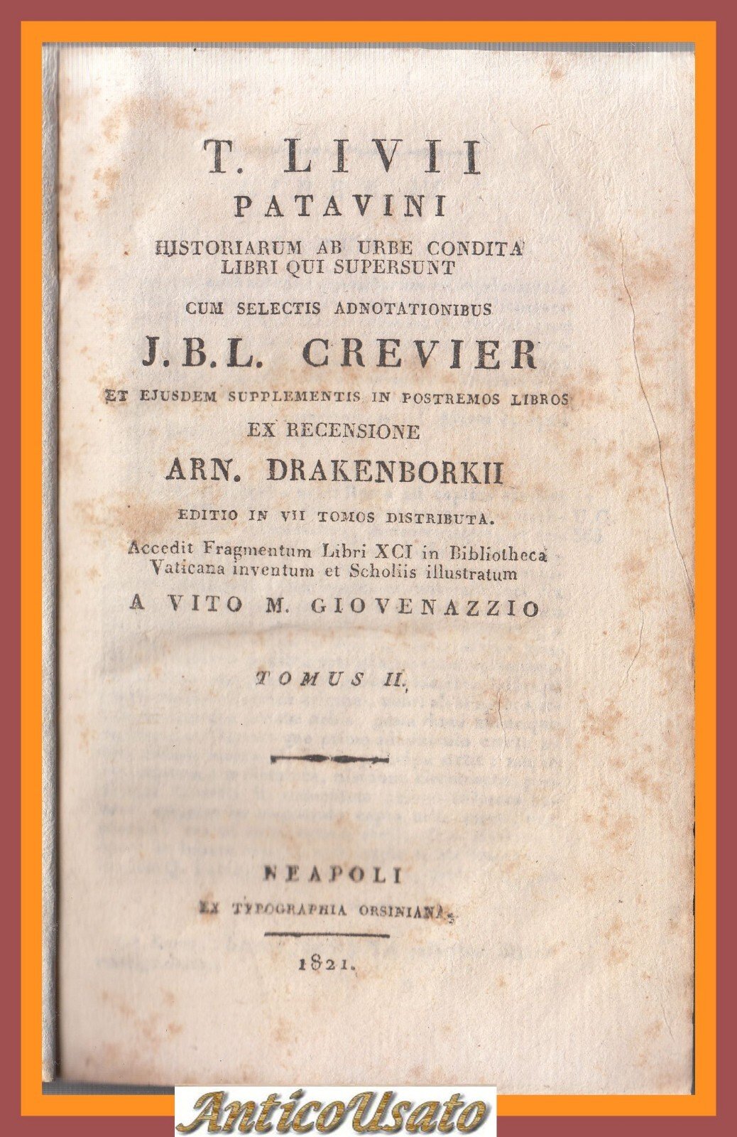 T. LIVII PATAVINI HISTORIARUM AB URBE CONDITA LIBRI QUI SUPERSUNT CUM SELECTIS ADNOTATIONIBUS J.B.L. CREVIER IT AJUSDEM SUPPLEMENTIS IN POSTREMOS LIBROS EX RECENSIONE ARN. DRAKENBORKII EDITIO IN VII TOMOS DISTRIBUTA. Accedit Fragmentum Libri XCI in Bibliotheca Vaticana inventum et Scholiis illustratum A VITO M. GIOVENAZZIO.