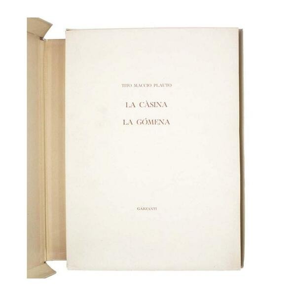 Autore: Tito Maccio Plauto Titolo: La Càsina - La Gòmena Sottotitolo: Versione di Guido Vitali, otto tavole di Giorgio de Chirico Note: Esemplare n. 30 Edizione: Garzanti editore 1952 Dimensioni: 24 x 32 cm c.a. Pagine: non numerate Copertina: Cofanetto originale Condizioni: Ottime come da foto - Cofanetto rovinato sui bordi e sul dorso