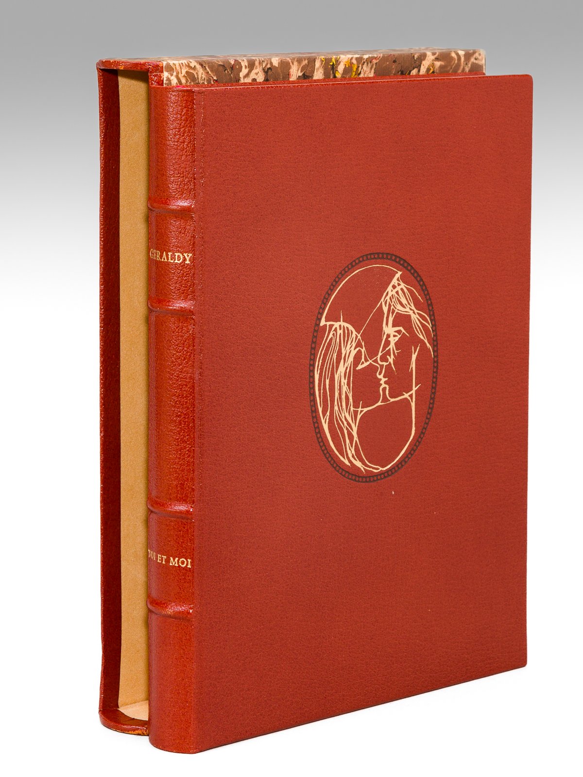 Illustrés de 50 lithographies originales en couleurs de Valadié, un des 300 exemplaires sur japon nacré comportant l'état définitif des illustrations (n° 228) après deux exemplaires uniques et quarante exemplaires avec aquarelle originale, 1 vol. grand in-8 reliure éditeur plein cuir brun estampé à froid sous étui bordé, , coll. "Poètes et Troubadours", Pierre de Tartas, 1982 Bel exemplaire du superbe tirage sur papier Japon nacré (sans la suite annoncée, comme toujours). Une très belle édition du chef-d'oeuvre de Paul Géraldy.