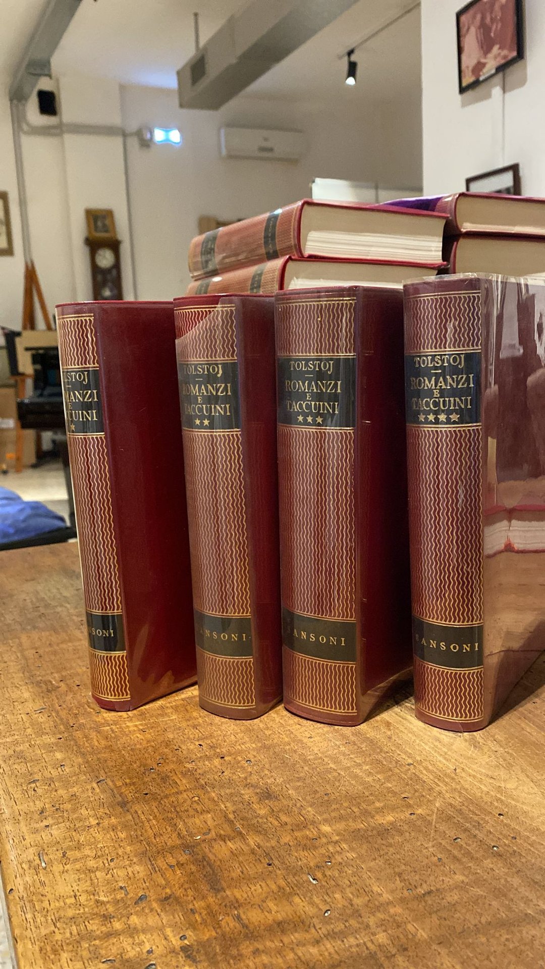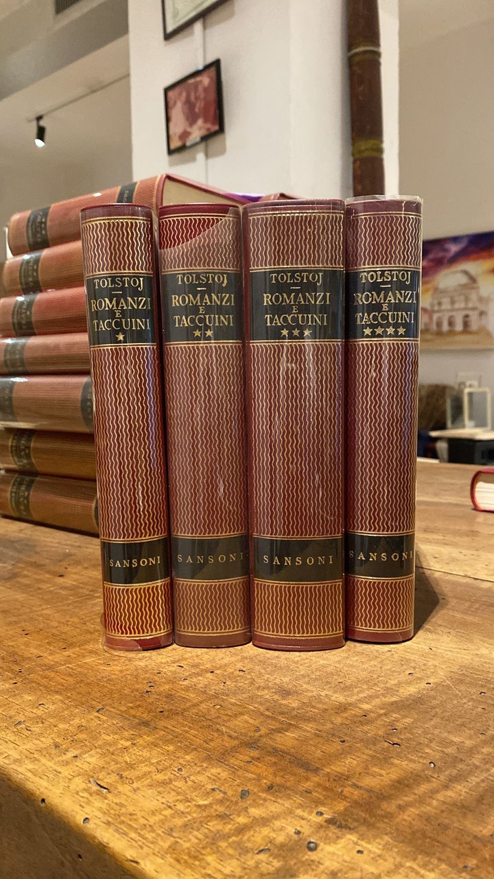 Opera completa in 4 volumi. Rilegati in pelle. Incisioni in oro ed etichetta nera sul dorso. Condizioni ottime, quasi nuovo. Le opere contengono rispettivamente gli appunti per: ( vol 1-2) GUERRA E PACE; ( vol 3)ANNA KARENINA ; (vol 4) RESURREZIONE.