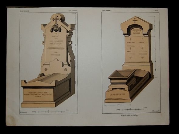 In 4° grande; 51 cc. compresa antiporta. Legatura editoriale in piena tela viola con titolo impreso al piatto anteriore entro doppia cornice nera. Qualche lieve strofinatura ai piatti. Allinterno esemplare in buone-ottime condizioni di conservazione. Tutte le tavole presentano una bella coloritura. Prima ed unica edizione di questa curiosa opera di architettura funebre nella quale sono presentate numerose tombe monumentali. Prima ed unica edizione non comune.