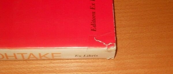 - buono stato generale con qualche segno di usura esternamente tra cui i più evidenti sono uno strappetto su angolo inferiore sinistro della sovracopertina, strappo di circa cm 10 sulla parte posteriore di sovracopertina riparato in maniera approssimativa e strappo su dorso della copertina. PS: sarà per la scarsa qualità del mio apparecchio fotografico o altro ma tengo a precisare che la sovracopertina non è come appare in foto e ad eccezione della parte nera in basso a destra è tutta di color rosso