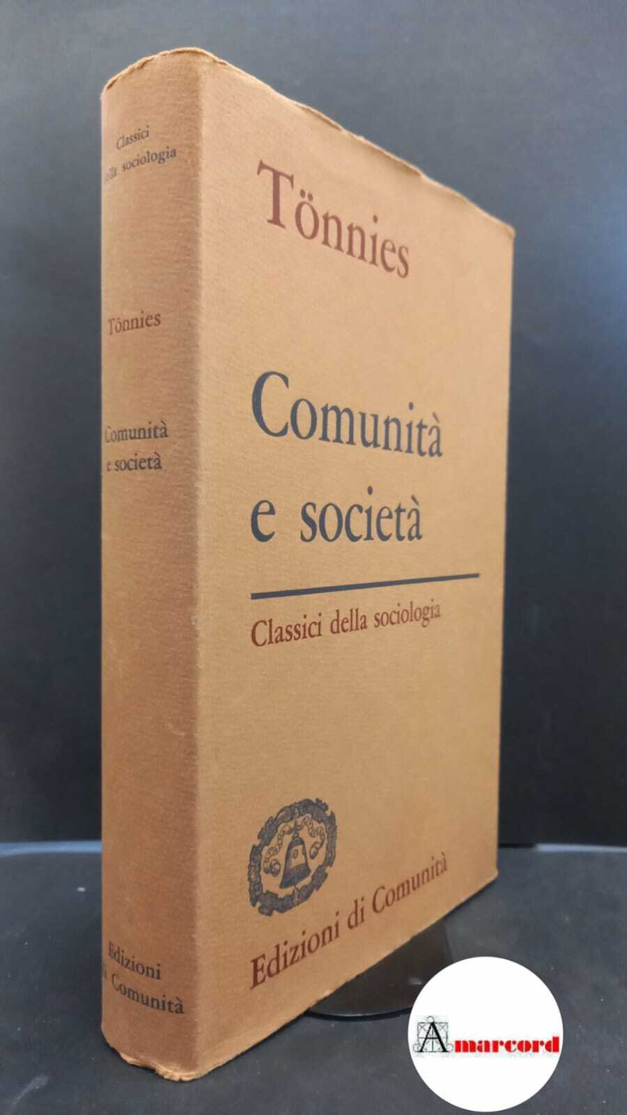 911 Tönnies, Ferdinand Tönnies, Ferdinand. , and Treves, Renato. Comunità e società Milano Edizioni di Comunità, 1963. , Edizioni di Comunità 1963 italiano, in ottavo XXXIII, 313 42216