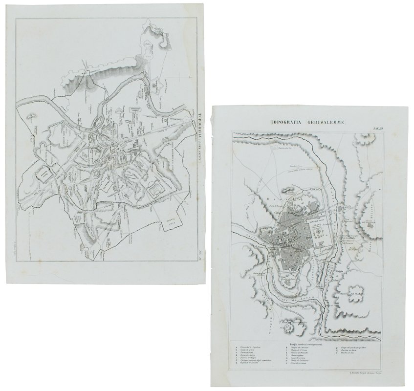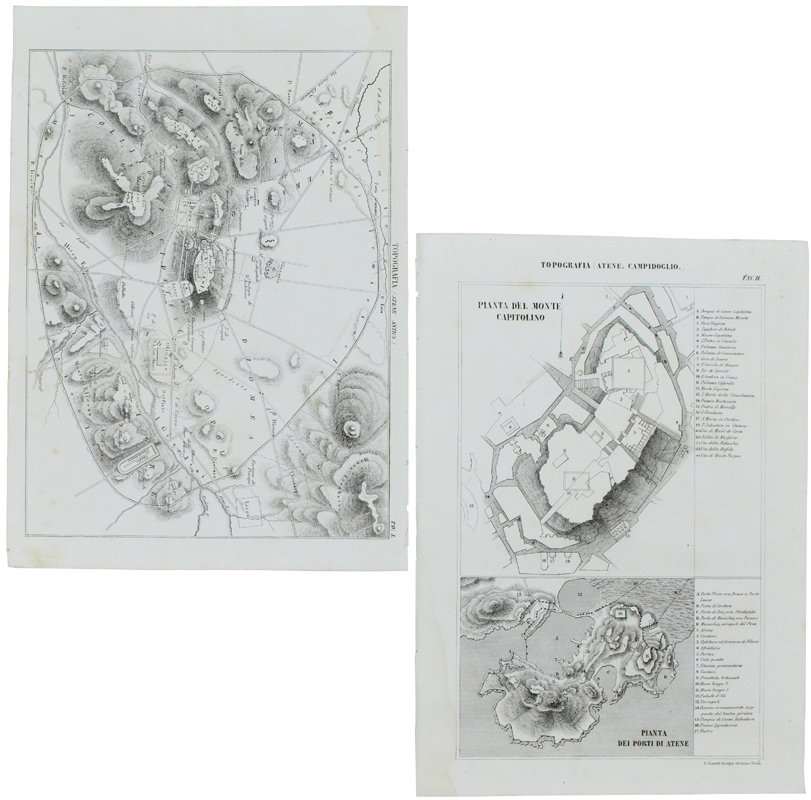 TOPOGRAFIA ANTICA: Atene, porti e campidoglio, Gerusalemme, Roma antica. Quattro tavole con incisioni in rame tratte dall'ATLANTE della NUOVA ENCICLOPEDIA POPOLARE ITALIANA.