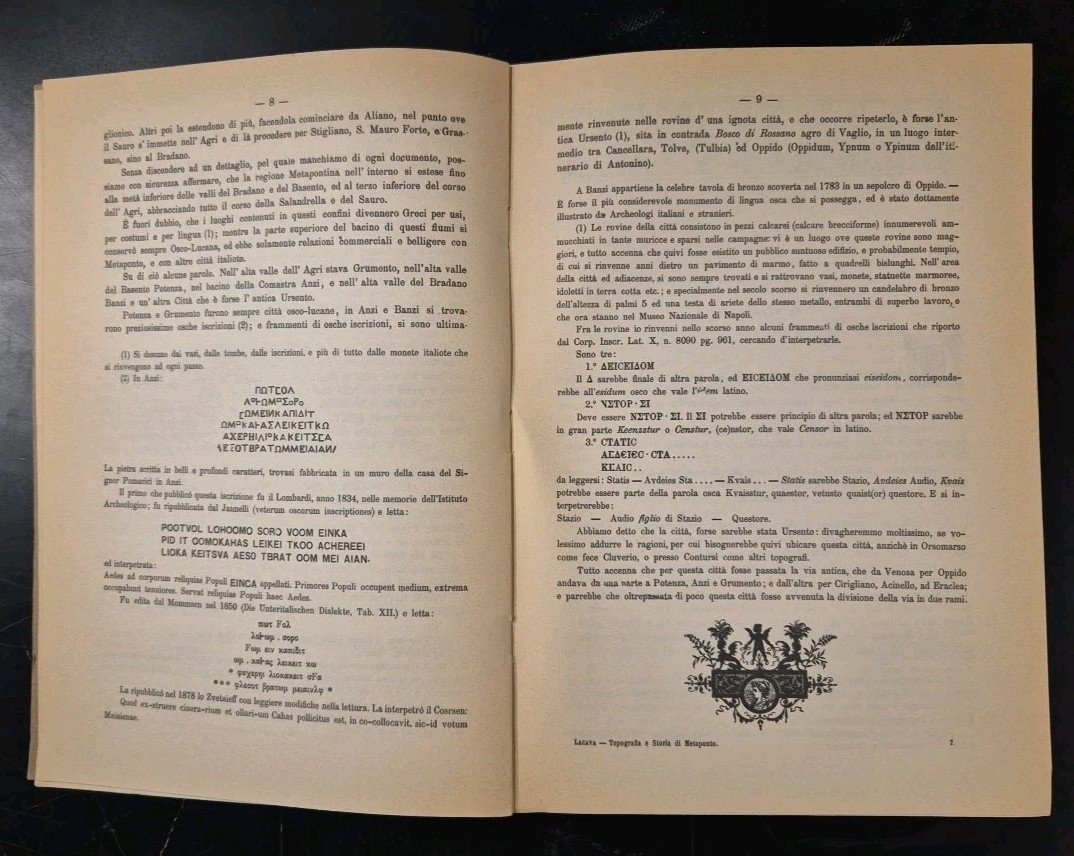 TOPOGRAFIA E STORIA DI METAPONTO di M Lacava 1973 Antonio Morano Libri Antichi
