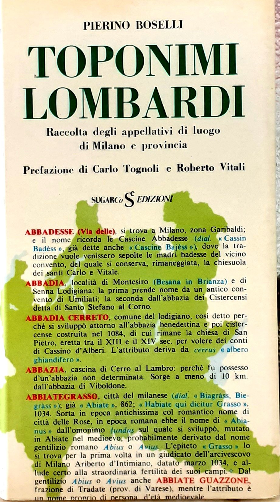 TOPONIMI LOMBARDI. RACCOLTA DEGLI APPELLATIVI DI LUOGO DI MILANO E PROVINCIA.