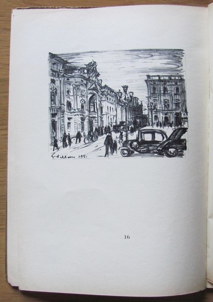 Firma autografa dell'autore all'occhietto. 15 tavole in b/n f.t. protette da velina di Felice Vellan. Edizioni Rattero - Torino, 1953. Brossura editoriale con piccola imperfezione in basso alla cerniera del dorso. Molte firme in antiporta (per un probabile regalo). 24,5x34; pp.47. Ottimo stato. , Buono (Good)