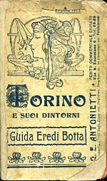 In-24°, pp. XXXII di pubblicità illustrate su carta rossa, 344, brossura editoriale con titolo e illustrazione in azzurro (una testa femminile tra decori floreali Liberty). Numerose illustrazioni fototipiche n.t. Alcuni restauri alla brossura. Buon esemplare. Dettagliatissima guida di Torino che veniva pubblicata annualmente e con continui aggiornamenti dagli Eredi Botta.