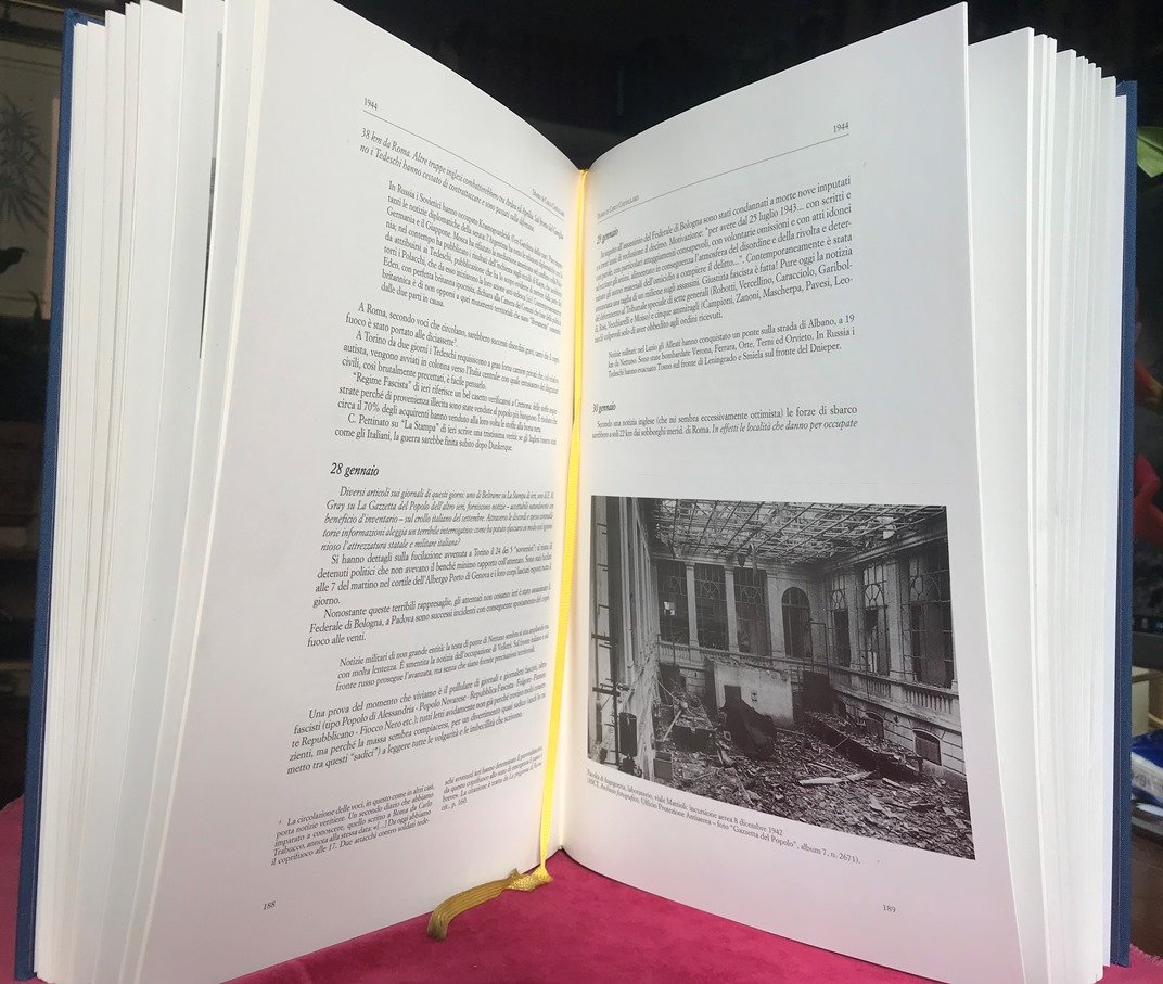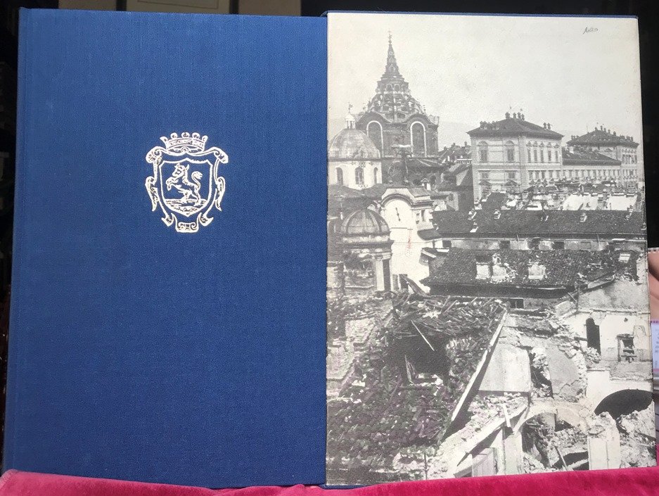 Volume in folio, legatura editoriale in tela blu con stemma municipale in oro al piatto e titolo in oro al dorso, in cofanetto editoriale figurato, XVI, 538, (4) pp., 165 illustrazioni fotografiche in b.n. n.t. Resoconto giornaliero dei bombardamenti su Torino del secondo conflitto mondiale, documentato dalle moltissime illustrazioni. In ottimo stato.