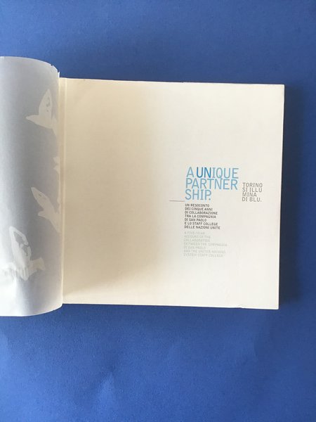 Un resoconto dei cinque anni di collaborazione tra la compagnia di San Paolo e lo Staff College delle Nazioni Unite. Il testo è in italiano, inglese. Numerose illustrazioni a colori e in bianco e nero fuori testo. Lievi strappi alla sovracoperta