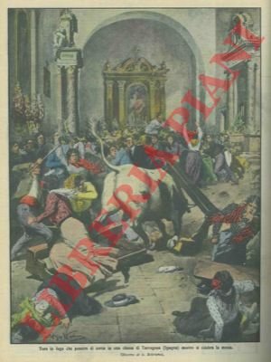 Toro in fuga, a Tarragona in Spagna, penetra in una chiesa durante lo svolgimento di una messa.