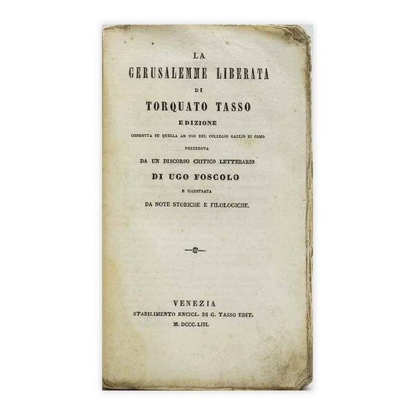 Autore: Torquato Tasso Titolo: La Gerusalemme Liberata 1853 Dimensioni: 14x8 cm, Pagine: 522 Copertina: Brossura Condizioni: Buone come da foto normali tracce di foxing dovute al tempo testo integro e perfettamente leggibile Peso: 0,222 kg
