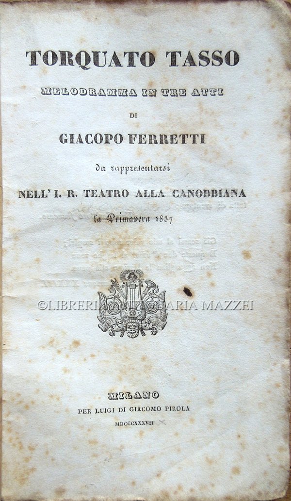 Torquato Tasso. Melodramma in tre atti di Giacopo Ferretti da rappresentarsi nell'I. R. Teatro alla Canobbiana la Primavera 1837