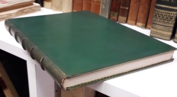 4° pagine 189 (5) con molte illustrazioni nel testo-splendida legatura coeva pieno marocchino verde firmata A. Casciani. Titolo oro al dorso (5 nervi) interno dei piatti con ampia cornice dorata, edizione di 550 esemplari numerati (n. 63) Lunga dedica autografa dell'autore. Esemplare unico.