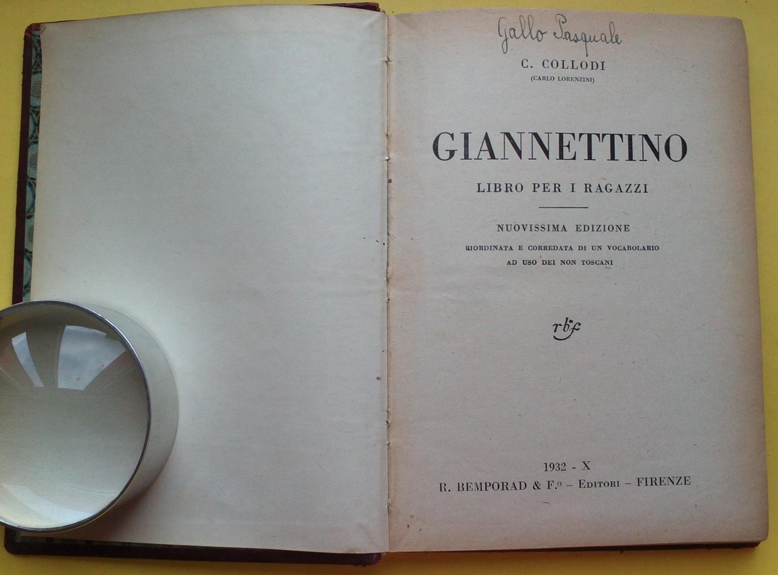 Toscana-C. Collodi-Giannettino-Edizione Con Vocabolario Per I Non Toscani 1932