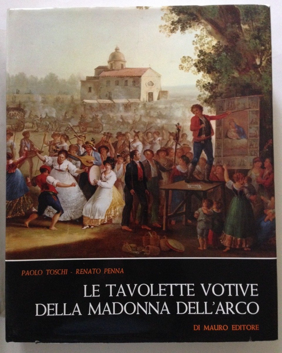 TOSCHI PAOLO, PENNA RENATO, LE TAVOLETTE VOTIVE DELLA MADONNA DELL'ARCO DI MAURO EDITORE, 1971, in 4°, pp. 150, ill. n.t. e 99 tavv. f.t. b/n e a col., 500 ex voto riprodotti, carton. rigido ed. con sovracop. ed. fig. con ulteriore protezione in acetato trasparente, custodia rigida ed., dedica personale del Banco di Napoli, buon es. Condizioni di conservazione Esemplare in buone condizioni con leggere tracce d'uso; custodia editoriale un po' sbiadita e con qualche piccola abrasione; sovracoperta editoriale con minimi strappetti ai margini e agli angoli; protezione acetato trasparente con alcune mancanze alla cuffia inferiore del dorso e al margine inferiore; interni molto buoni. MM744.D2-324