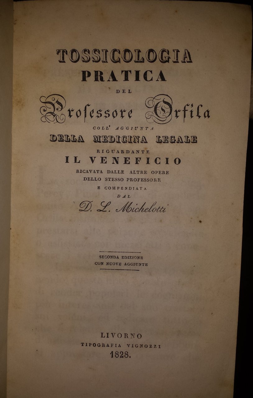 Tossicologia pratica del professore Orfila coll'aggiunta della medicina legale riguardante il veneficio ricavata dalle altre opere dello stesso professore e compendiata D.L. Michelotti. Seconda edizione con nuove aggiunte.
