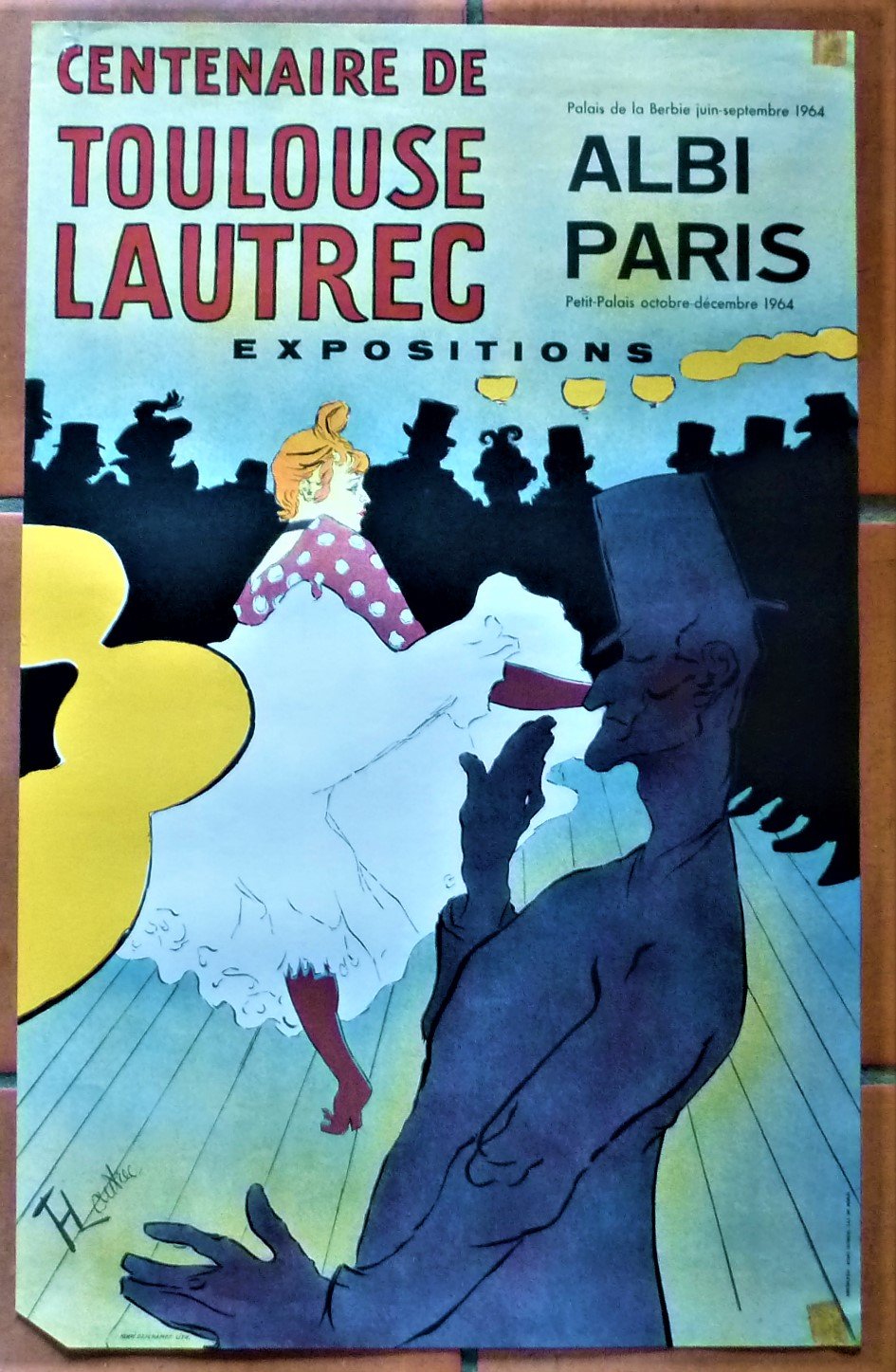 Toulouse Lautrec. Affiche édité à l'occasion du Centenaire de sa naissance. Albi "Palais de la Barbie" juin-septembre 1964; et Paris "Petit-Palais" Octobre-décembre 1964.