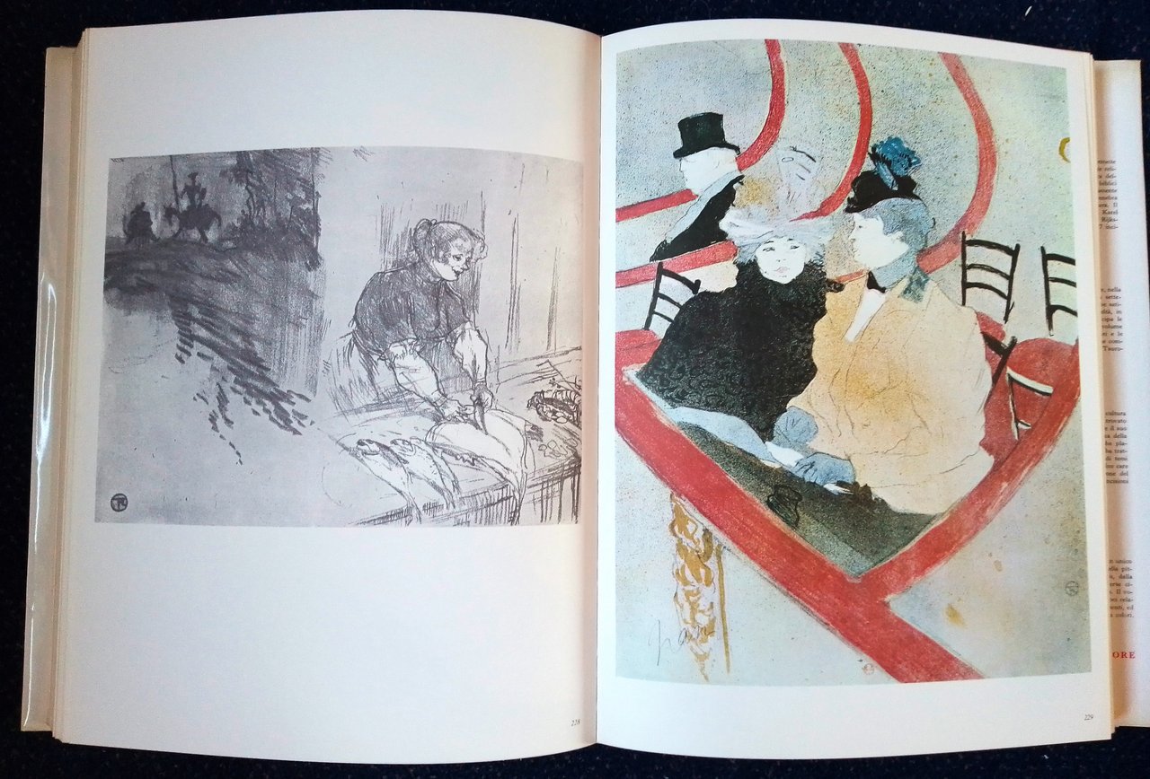 1 Volume (mm.335x260), pagine XXIX di testo - 370 di illustrazioni - indici. Legatura rigida editoriale con sovraccoperta illustrata. Ottimo stato di conservazione, alle 29 pagine di testo fanno seguito riproduzioni in nero ed a colori delle opere dell'artista francese (1864-1901). Dedica scritta a biro su foglio bianco di precedente possessore, datata Natale 1966.