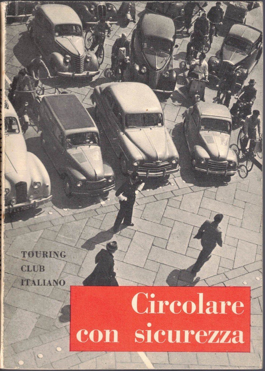 Touring Club Italiano, Circolare con sicurezza, Milano 1955, pp. 141, ill. col., cm 17, br. ed. Disegni di Edo Cacciari. Presentazione di Cesare Chiodi. Leggere tracce d’uso, minime fioriture, per il resto buon esemplare.