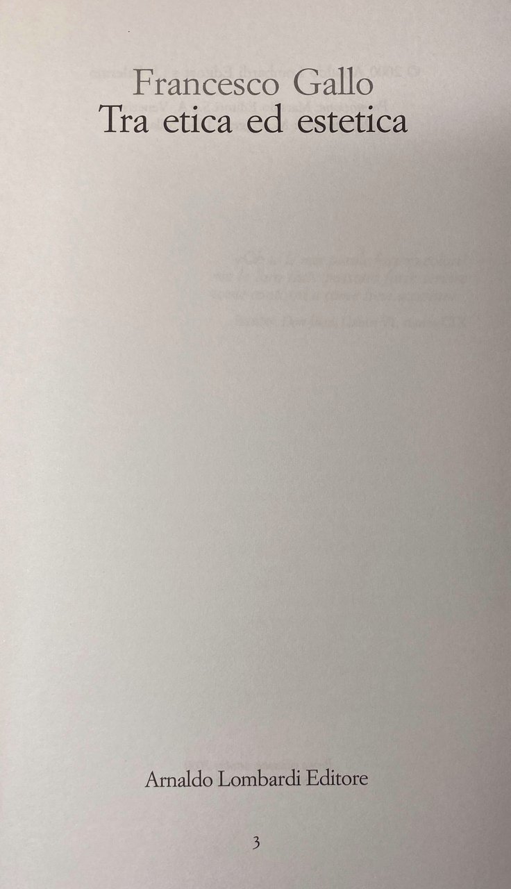 Titolo: Tra etica ed estetica