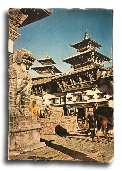 Prima edizione, 1953. Brossura editoriale illustrata a colori (cm.26x17), con una cartina geografica ripiegata, con 85 illustrazioni fotografiche virate in azzurro e seppia su tavole. Cronaca della spedizione in Nepal occidentale del 1952 promossa dall'Istituto per il Medio ed Estremo Oriente. Le fotografie sono del capitano medico della Marina Italiana, Concetto Guttuso e di Francesca Bonardi. Piccola mancanza all'angolo destro inferiore della copertina, dorso con minimi difetti, peraltro integro. Argomenti: Asia - Nepal - Orientalismo