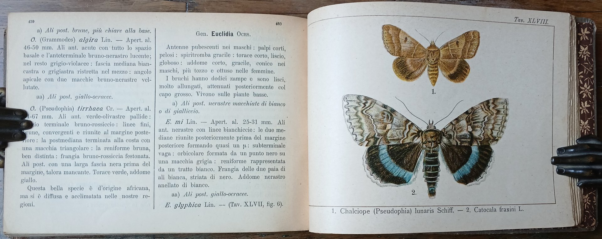 (Farfalle - Libri illustrati di entomologia - Lepidotteri - Scienze naturali) In 16° oblungo (cm 13,2x18,5), legatura in piena tela editoriale grigia con al piatto anteriore bel disegno liberty di Marazzi impresso in nero, custodia rigida in tela con applicate le riproduzioni dei piatti del volume, pp. X,(2),586 (la numerazione prevede due pagine per ogni facciata), con alcune figure nel testo e 54 belle tavole cromolitografiche fuori testo. Ottimo stato di conservazione.