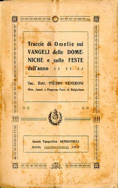 415 p. ; 19 x 12 cm. Don Pietro Veneroni, parroco di Belgioioso e professore per 16 anni nel seminario vescovile di Pavia di liturgia e arte sacra, traduttore dal tedesco e dotato di grande cultura e amore per le carte, che ebbe il merito di riordinare le carte dell'archivio arcivescovile negli anni 1908-1910. Qui vengono raccolte le sue migliori omelie della domenica e delle feste dell'anno tutte dedicate alle sacri scritture. Brossura editoriale, coperta in cartoncino flessibile, qualche segno del tempo alla coperta e alla pagine interne (ingiallimento) per il resto buon volume, intonso. Codice libreria 2299.