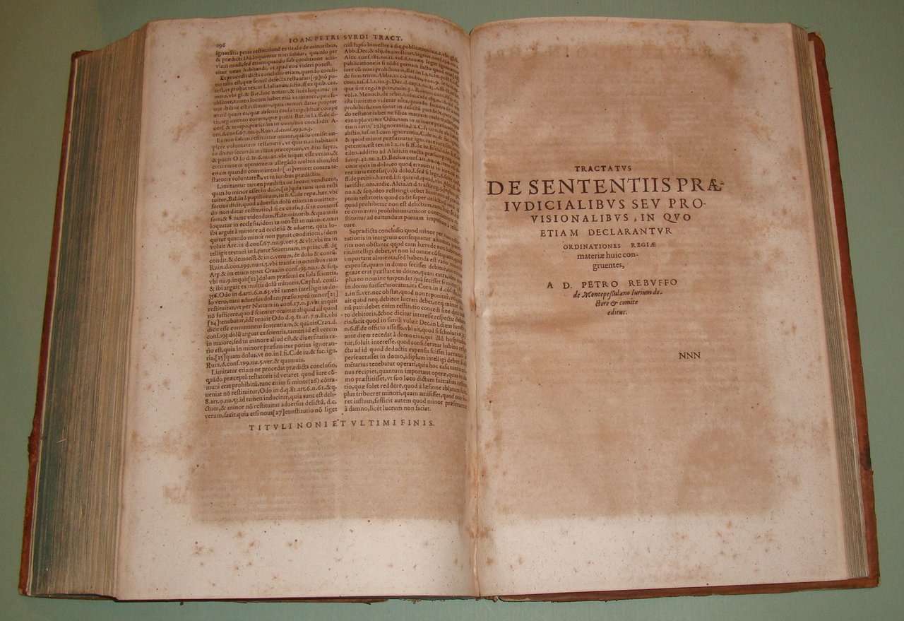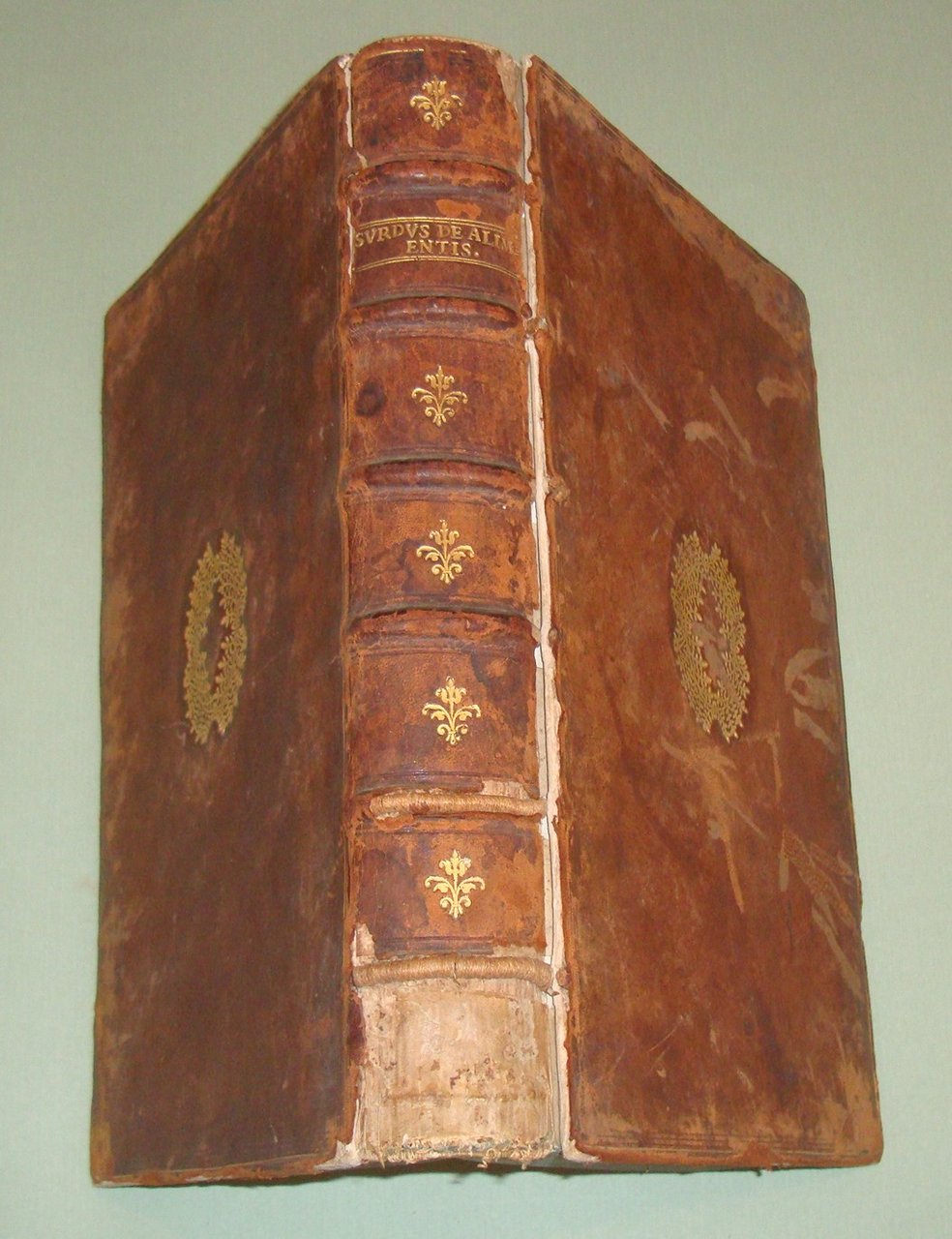 Ludguni, Sumptibus Horatij Cardon, 1602. In folio; pp.12n.nn., 736, 84n.nn. Frontespizio con caratteri neri e rossi. Testate, capilettera e finaletti silografati. Testo su due colonne, alcune pagine brunite. Legatura coeva in pelle, stemma in oro ai piatti. Dorso a cordoni con titolo e fregi in oro, abrasioni.