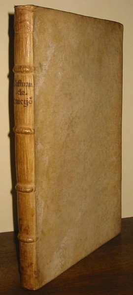 Folio (cm. 35), 4 cc.nn., 282 pp., 21 cc.nn. Frontespizio in rosso e nero con grande marca tipografica (sfera armillare tra Tolomeo ed Euclide con motto ‘Universitas rerum ut pulvis in manu Iehovae’). Legatura coeva in pergamena rigida con nervi. Titolo ms. al ds. e, in grandi caratteri, al taglio inferiore. Antica firma di appartenenza datata 1690 al piede del frontis. Fioriture e lievi ingialliture, altrimenti esemplare in ottimo stato di conservazione. Rara edizione.