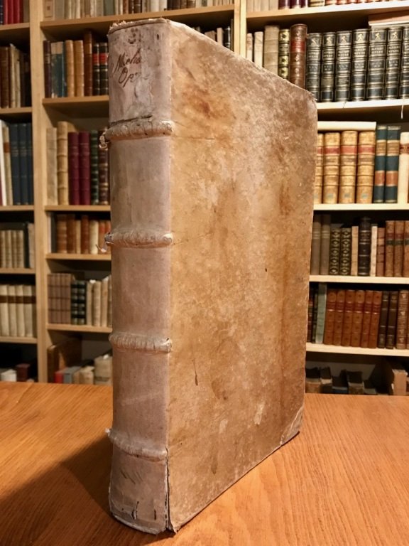 3 opere in 1 volume in-folio (cm. 34), legatura coeva in piena pergamena rigida con nervi al dorso e titolo anticamente ms. al taglio inferiore; pp. [8] 368 [46] 119 [21]; [8] 105 [15] 64 [8] 15 [5]; [6] 66 [8] 9 [3] in buono stato, frontespizi icon marca tipografica in silografia (salamandra) e primi due in rosso e nero, fregi e capilettera, antica firma di appartenenza al primo frontespizio e al risguardo; lievi fioriture sparse, un paio di fogli sciolti. Edizione che raccoglie i tre trattati del grande giurista urbinate, fratello del filosofo Giacomo. Buon esemplare.