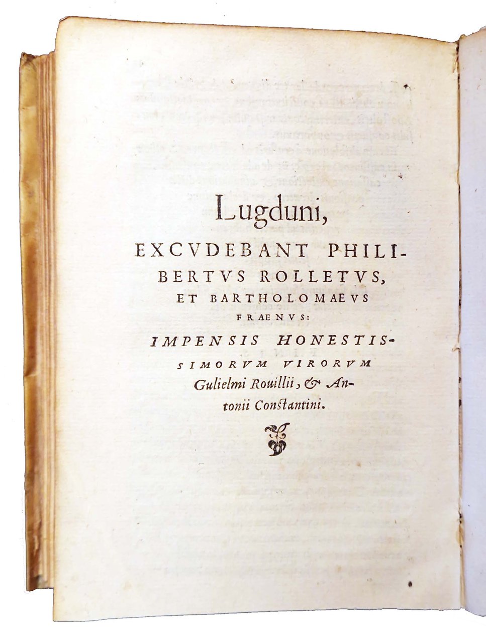 • Apud Gulielmum Rouillium sub scuto Veneto (Lugduni: excudebant, Philibertus Rolletus et Bartholomaeus Fraenus impensis, honestissimorum virorum Guilielmi Rouilli & Antonii Constantini)