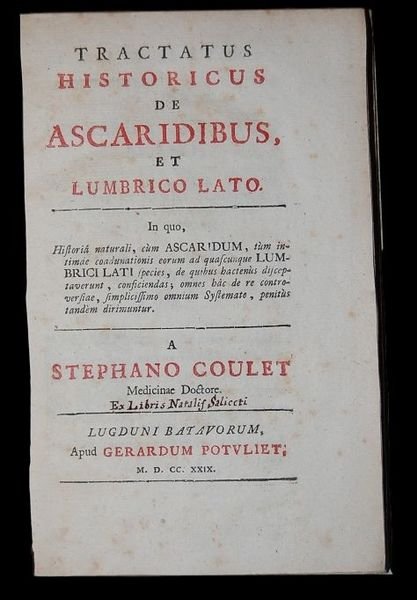 Tractatus historicus De Ascaridibus, et lumbrico lato. In quo, historia naturali, cum Ascaridum, tum intimae coadunationis eorum ad quascunque lumbrici lati species, de quibus hactenus disceptaverunt, conficiendas, omnes hac de re controversiae.