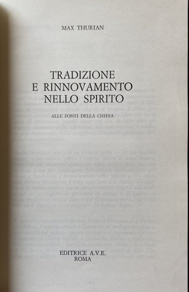 Anche se non si tratta di un libro di getto vi son raccolti infatti, come annota subito l'Autore, scritti di varia natura, preparati per occasioni diverse - tutto però è stato raccolto in base a un filo conduttore, felicemente puntualizzato nel titolo Tradizione e rinnovamento nello Spirito. Un titolo che, mentre riconferma il noto equilibrio dell'Autore - aperto sì al rinnovamento, ma in piena e sincera fedeltà alla tradizione - sa cogliere la genuinità di questa e di quello della tradizione, voglio dire, e del rinnovamento in Colui che ne è l'unica e vera sorgente: lo Spirito Santo.