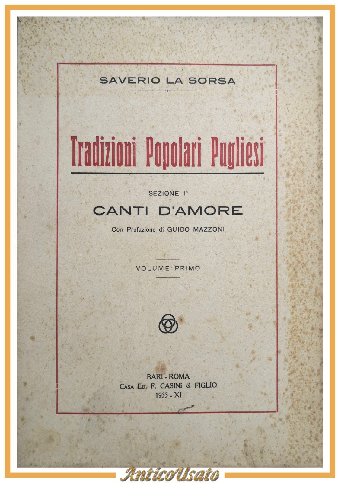 TRADIZIONI POPOLARI PUGLIESI di Saverio La Sorsa Canti D'amore 2 volumi Libro