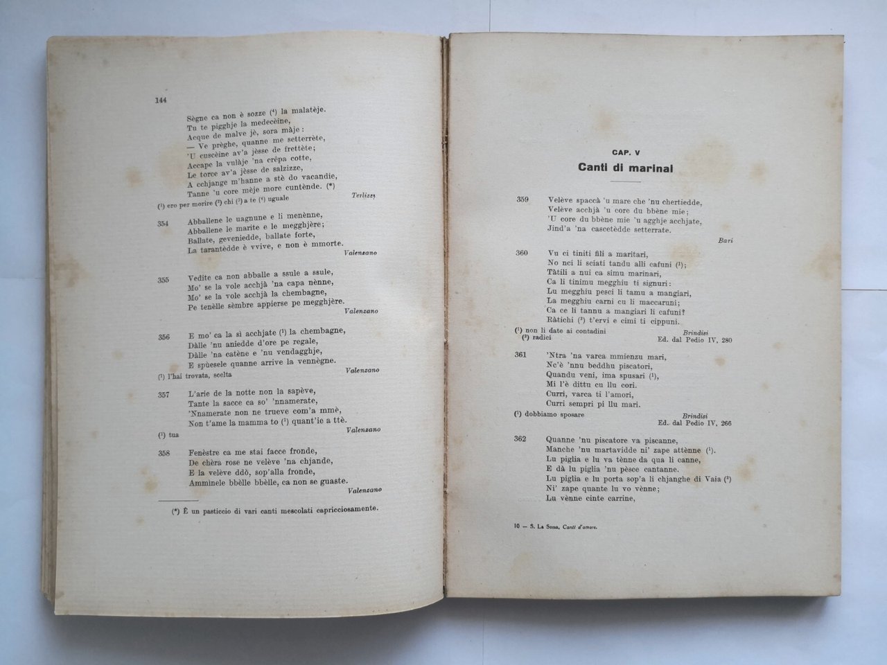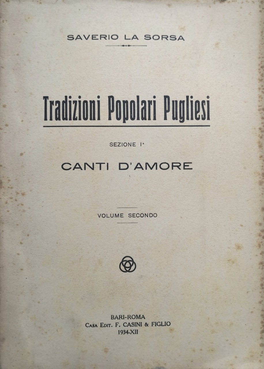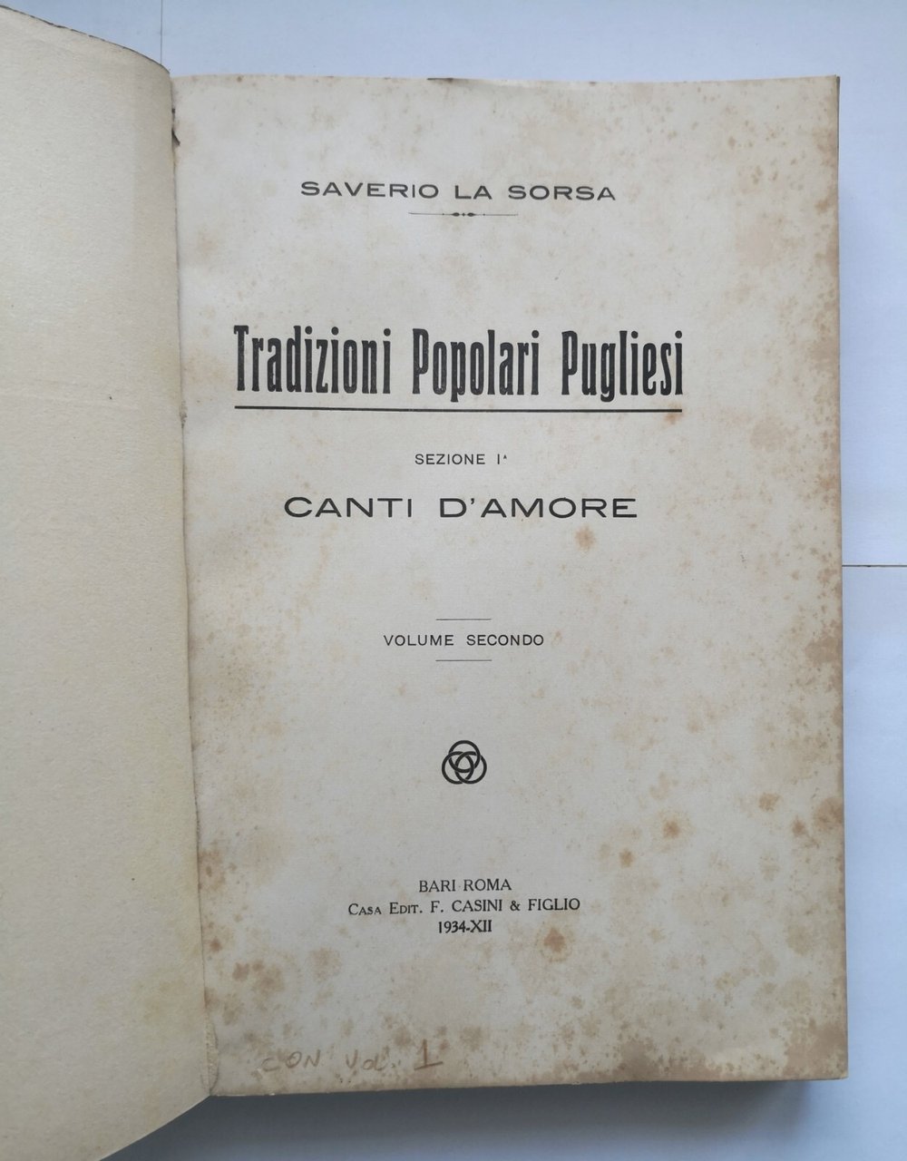 TRADIZIONI POPOLARI PUGLIESI di Saverio La Sorsa. Sezione 1. Canti d'amore. Volume I e II.
