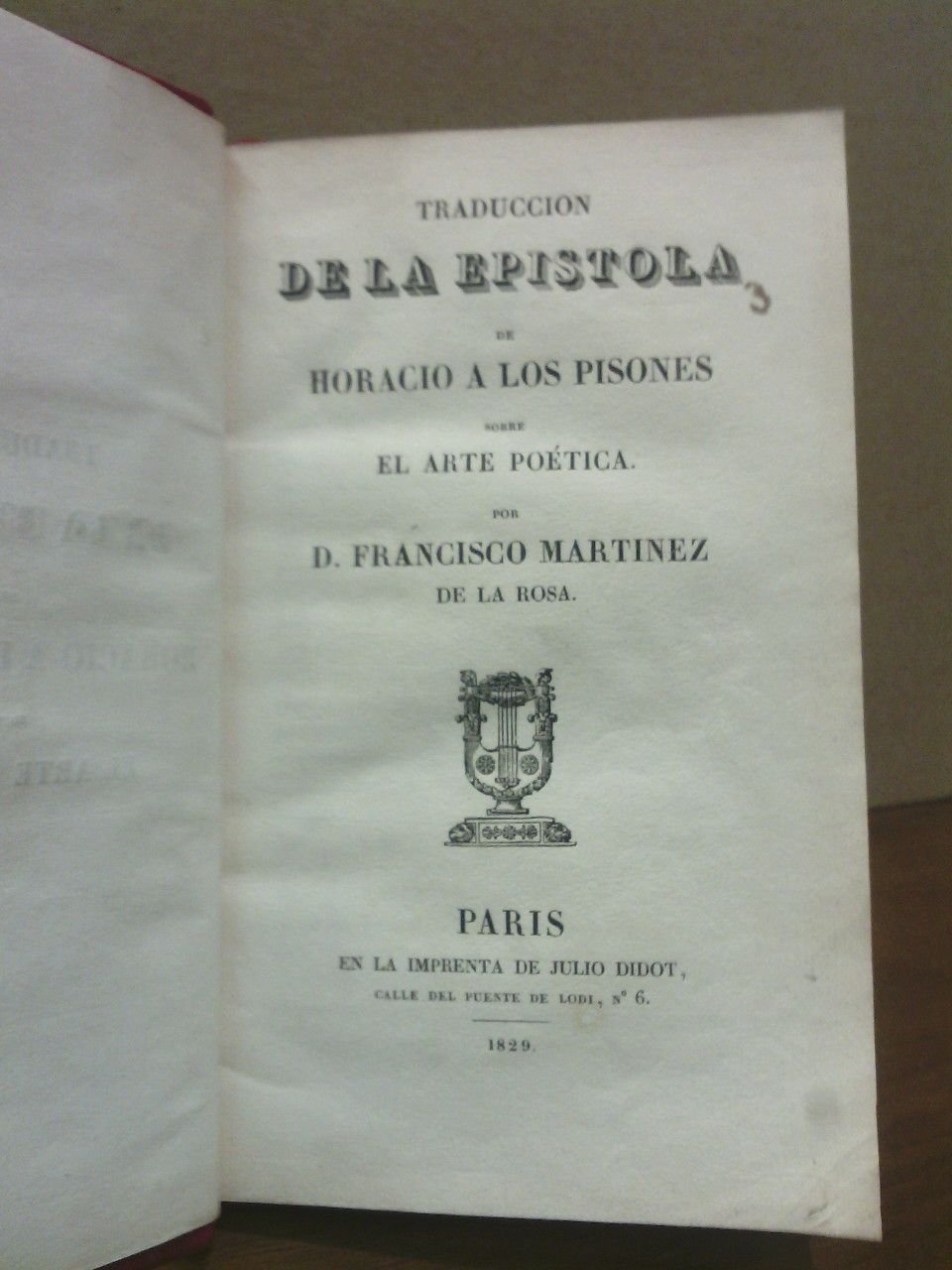 Traducción de la epístola de Horacio a los Pisones sobre arte poética / por D. Francisco Martínez de la Rosa