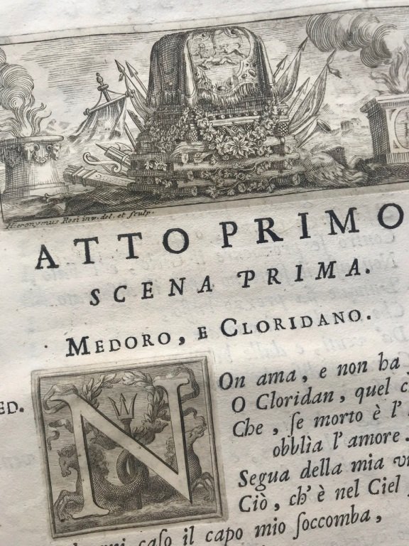 In-4° (cm. 22,7), legatura coeva in piena pergamena con titolo in oro al dorso (usure e strappi), pp. LXI [3] 570 [2] in buono stato, con 1 grande ritratto dell'autore cardinale inciso in rame da Carlo Grandi n.t., numerosi capilettera e pure deliziose testatine e finalini sempre in rame incisi da Girolamo Rosi, vignetta al frontespizio e stemma araldico alla dedicatoria; alcune fioriture. Esemplare genuino.
